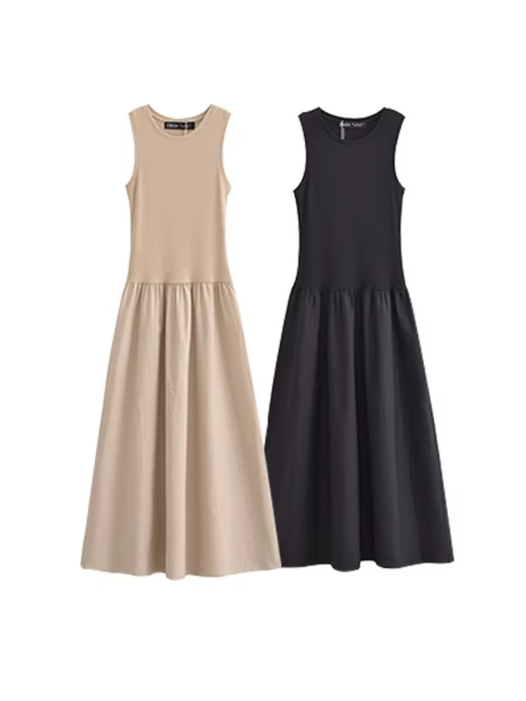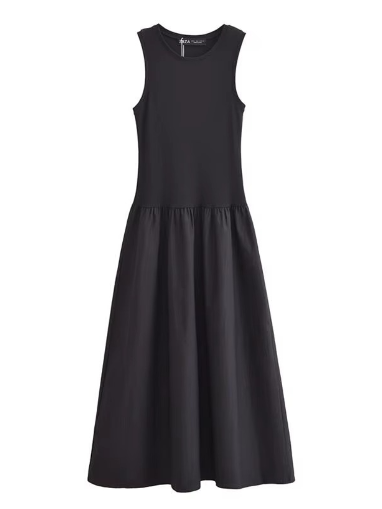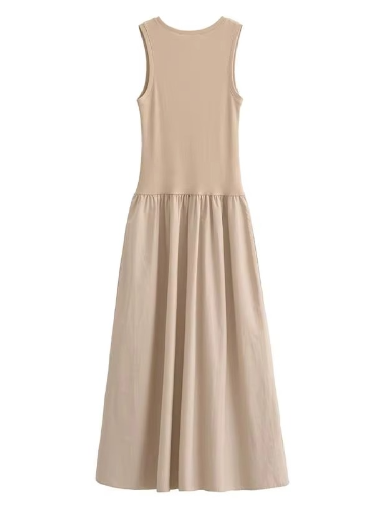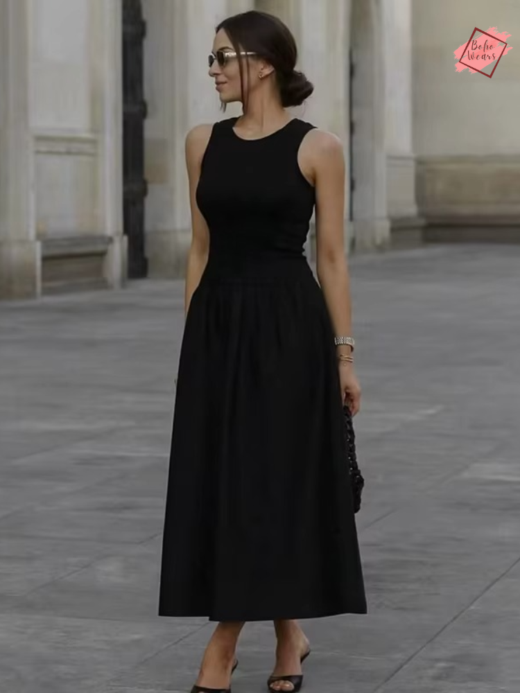 Summer Women's 2025 Chic Slim Holiday Dress – Sleeveless Mid-Calf A-Line Casual Dress