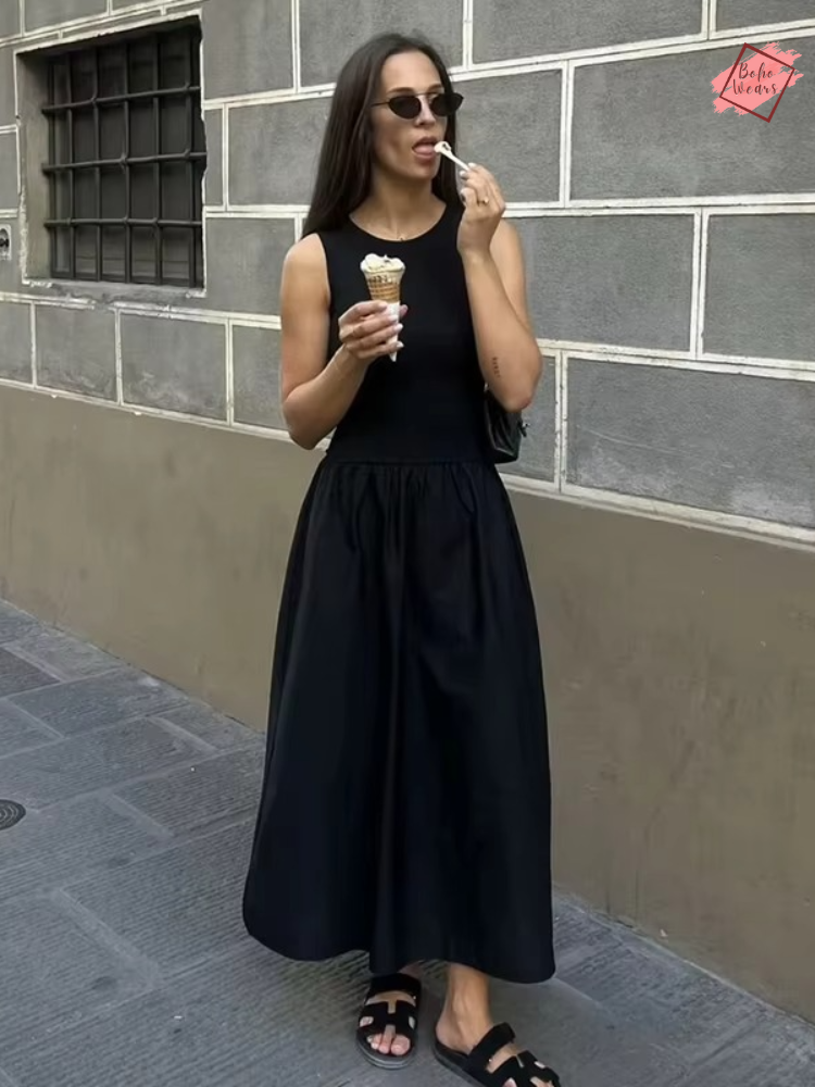 Step into effortless style with the Summer Women's Chic Holiday Dress – a perfect blend of elegance and comfort for your warm-weather wardrobe. This sleeveless A-line dress features a slim-fit silhouette, mid-calf length, and a classic O-neckline, making it ideal for summer holidays, casual events, brunch outings, and street style looks.