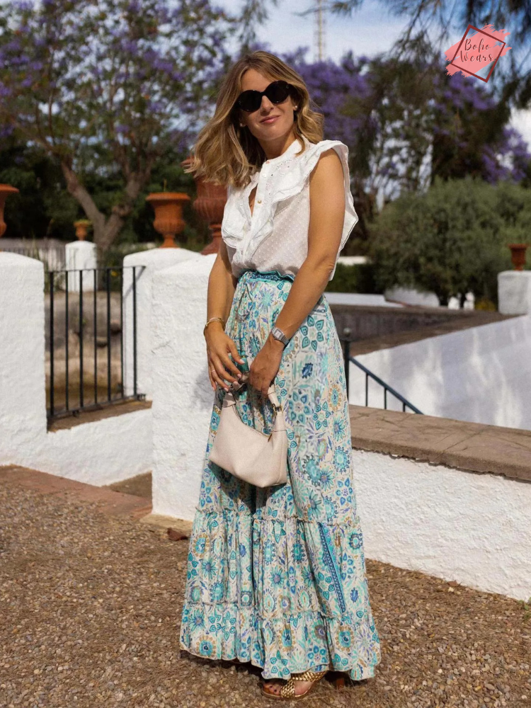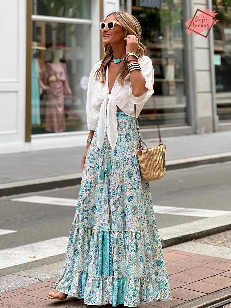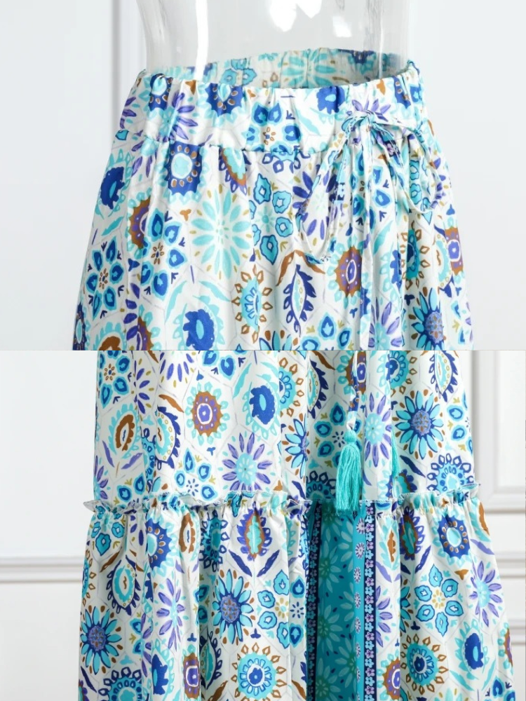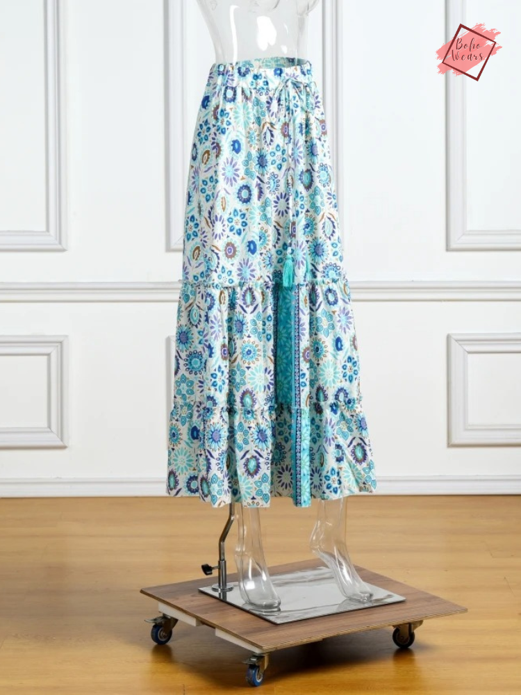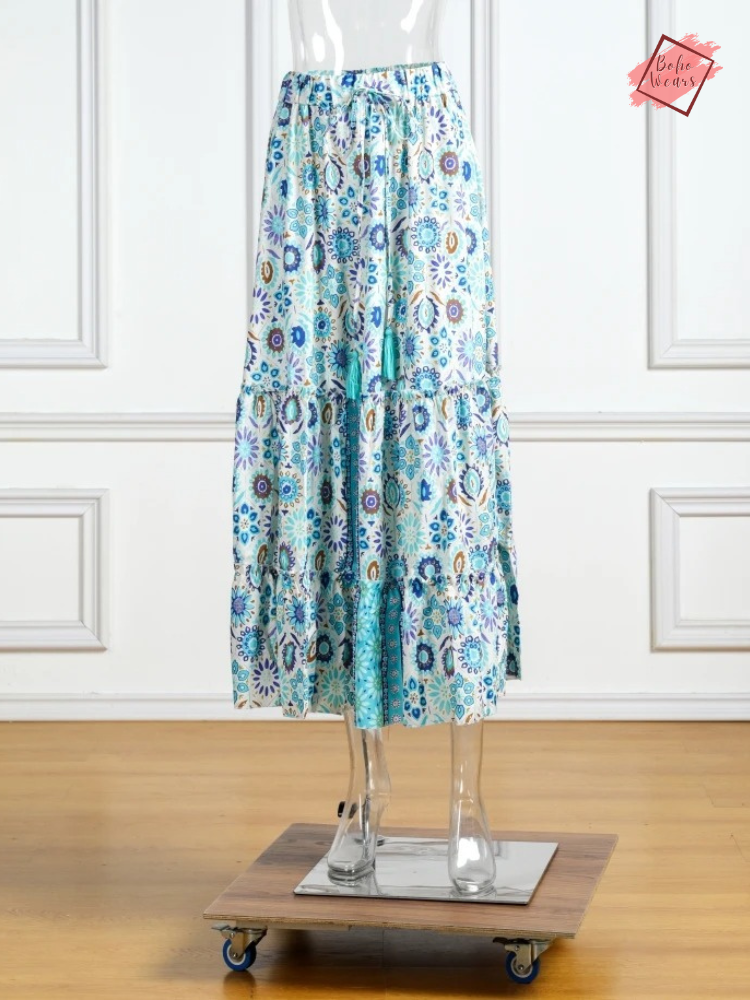 Trendy Women's Boho Skirt : Summer Edition with Fashionable Tassel Tie