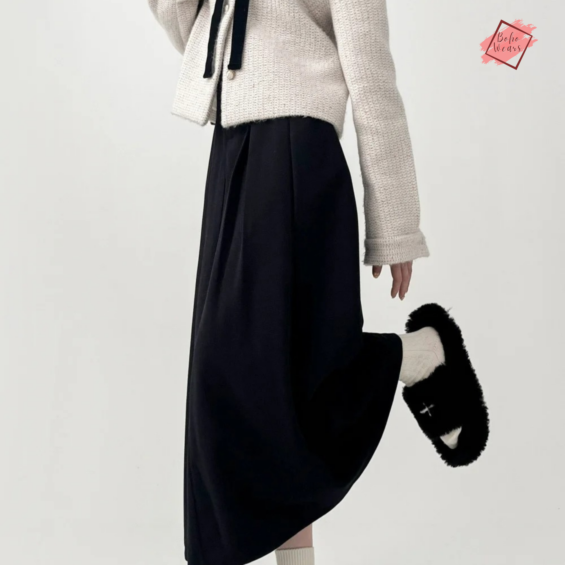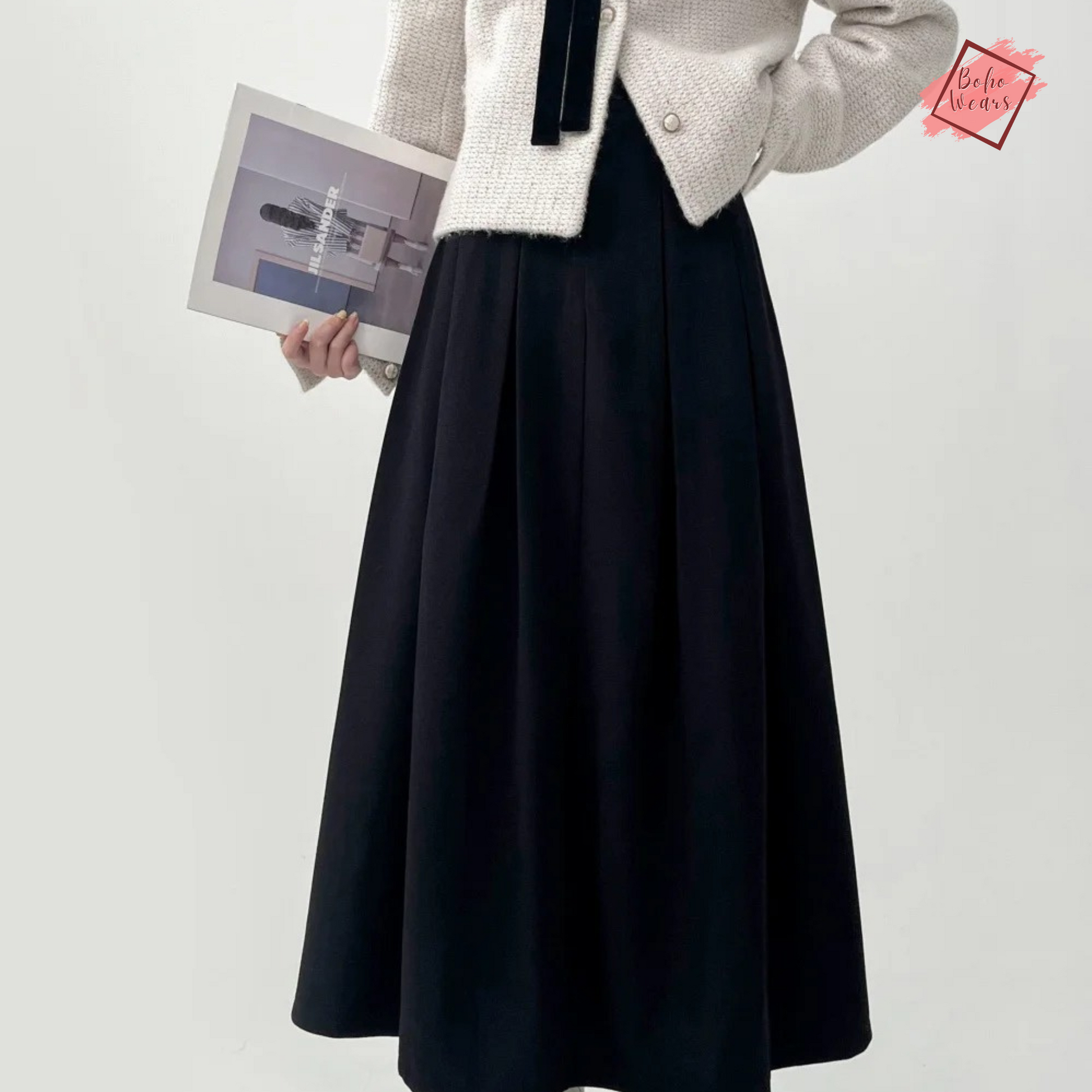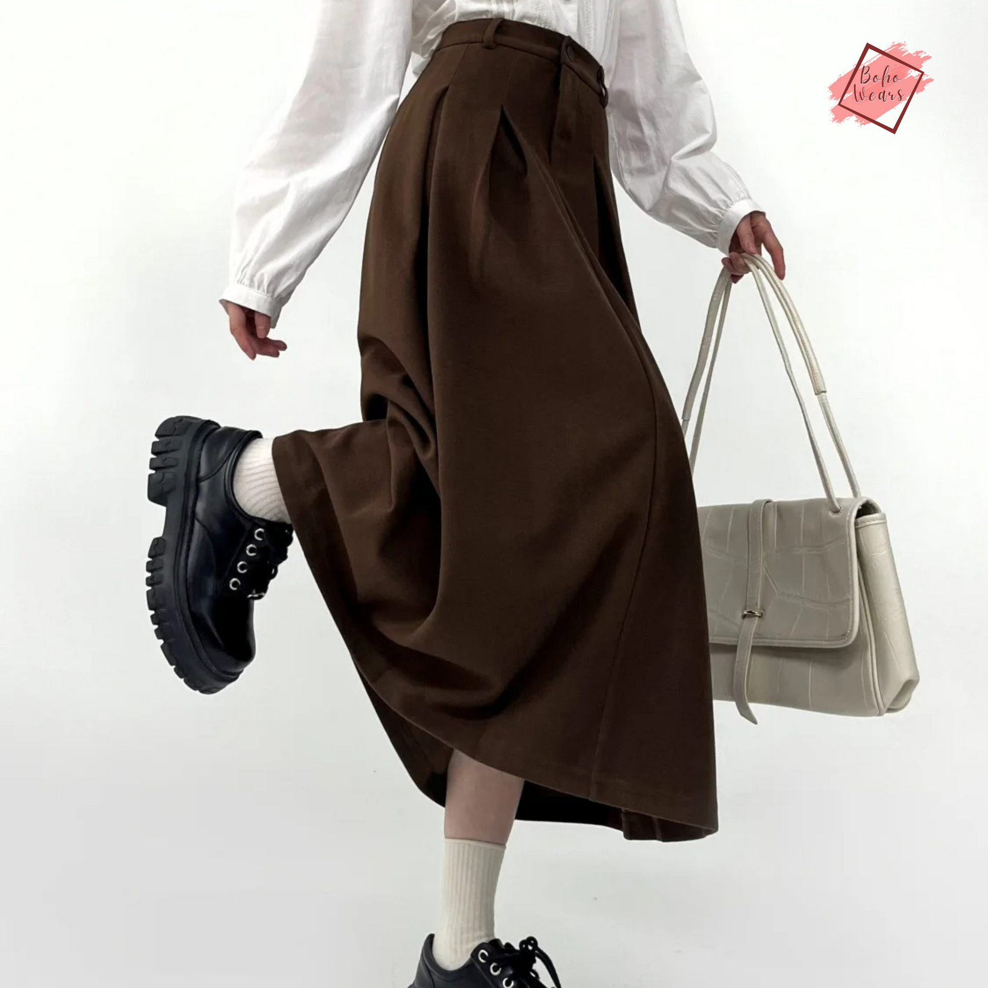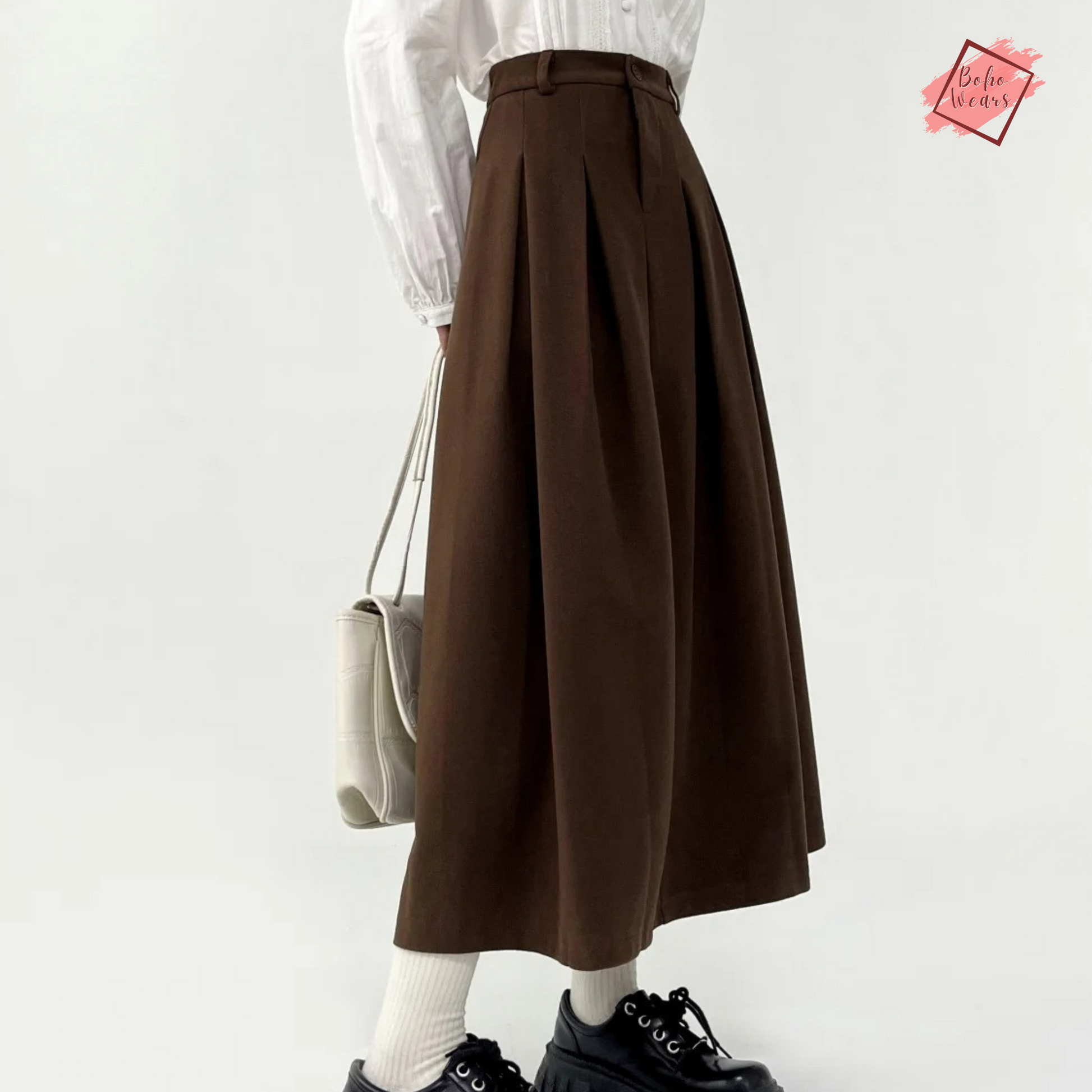 Vintage Korean Style: Elevate Your Casual Look with a High-Waisted A-line Midi Skirt