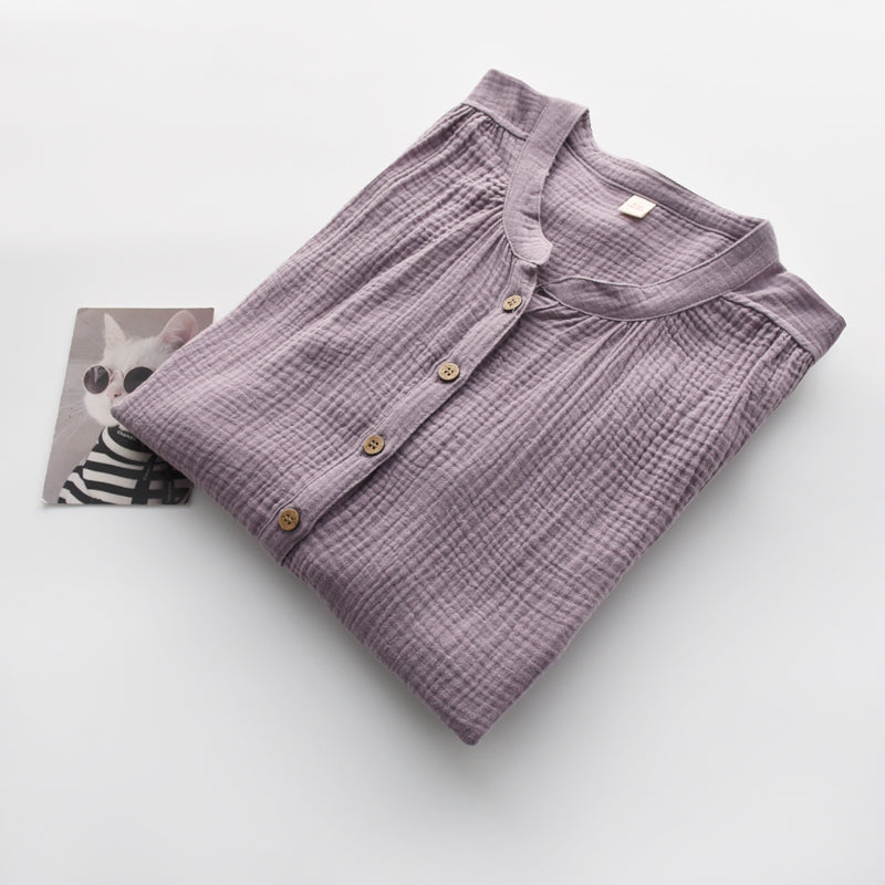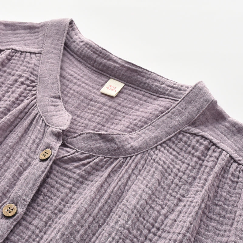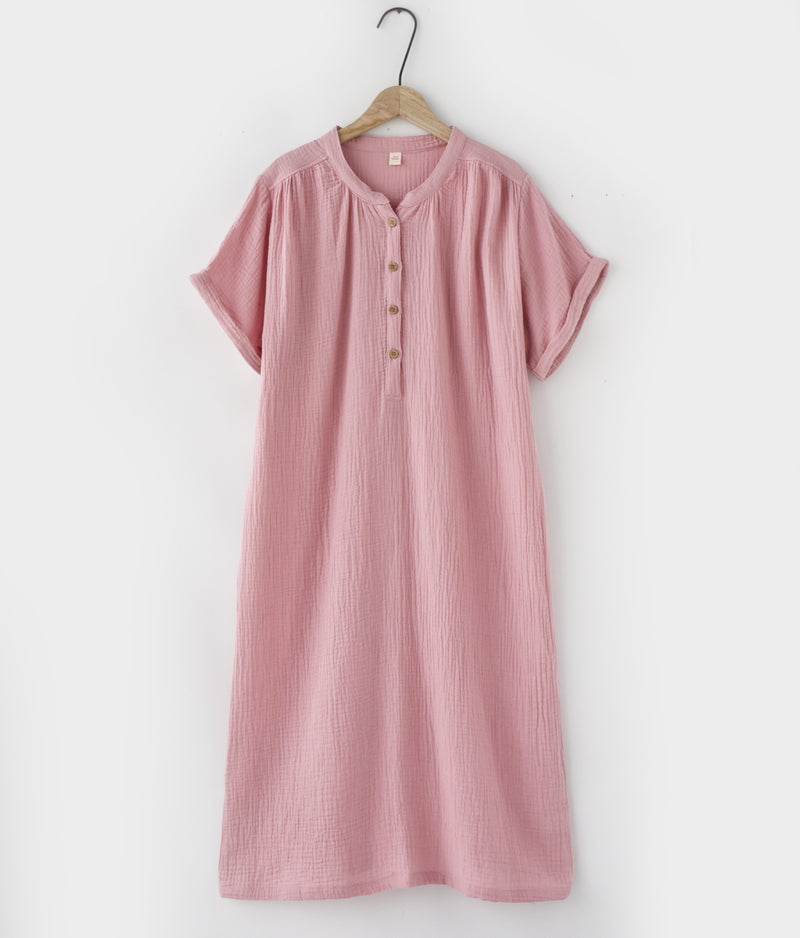 Women 100% Cotton dress, O-Neck Short Sleeve Button Up Midi Dresses, Summer Dress