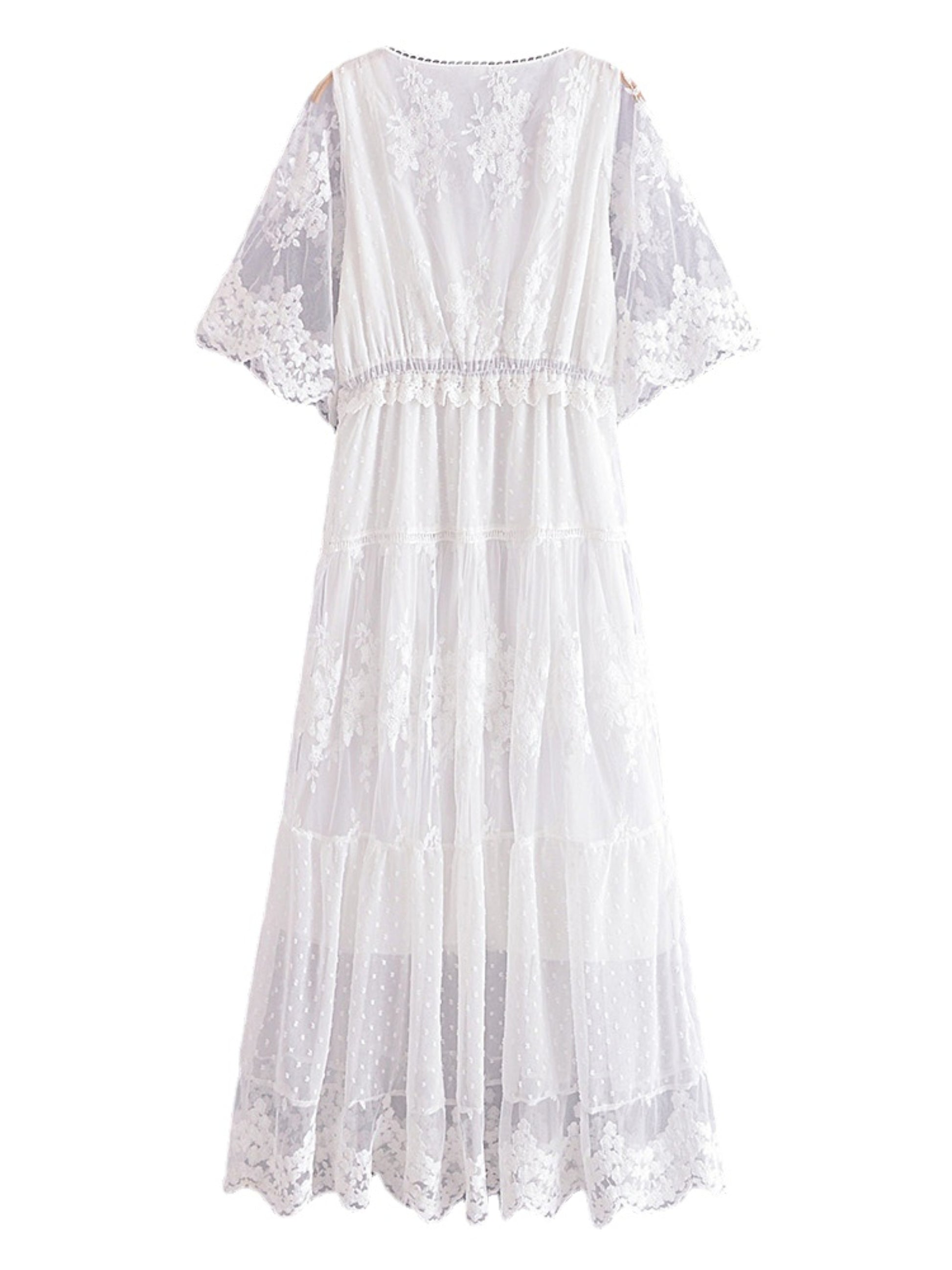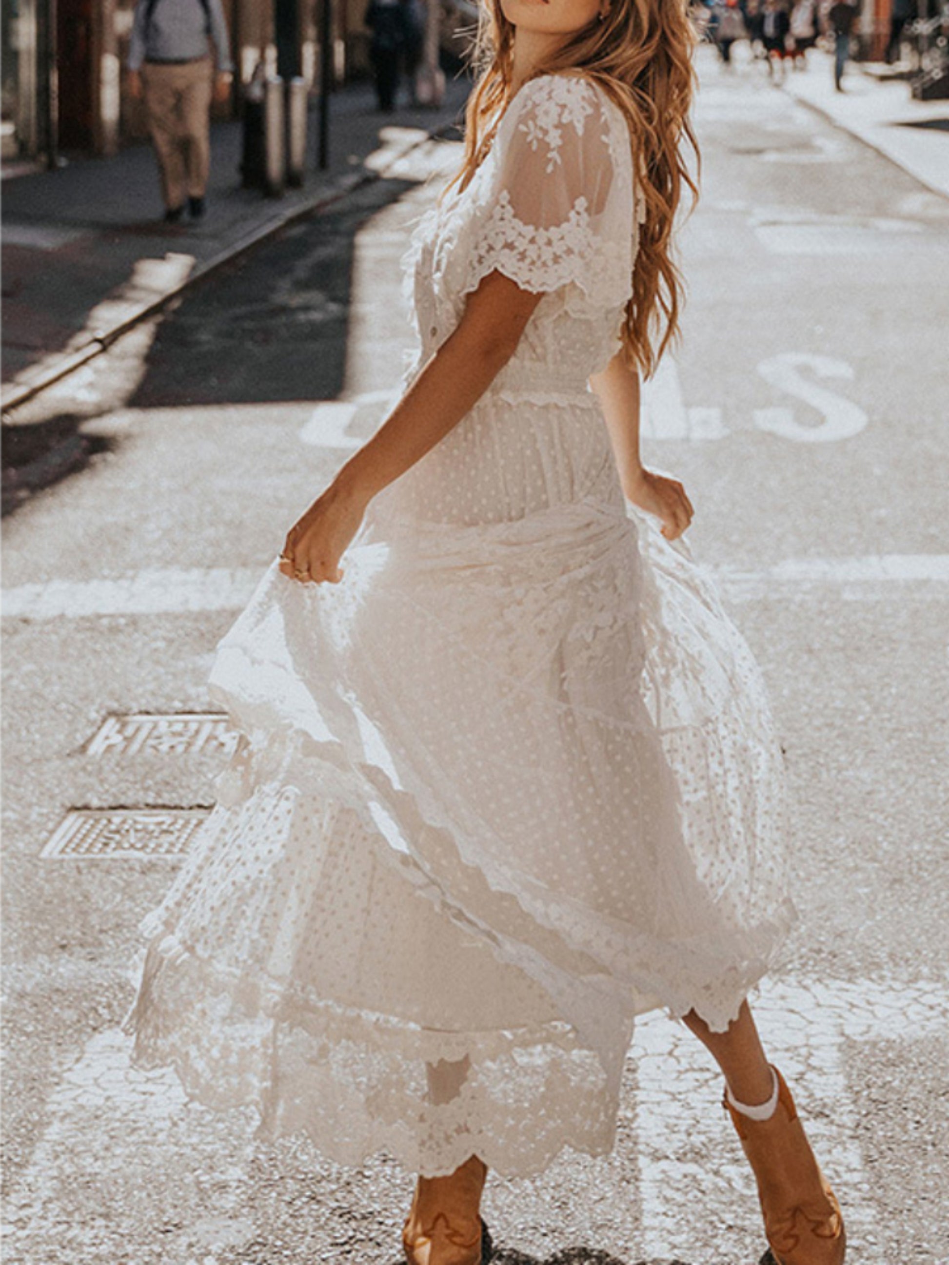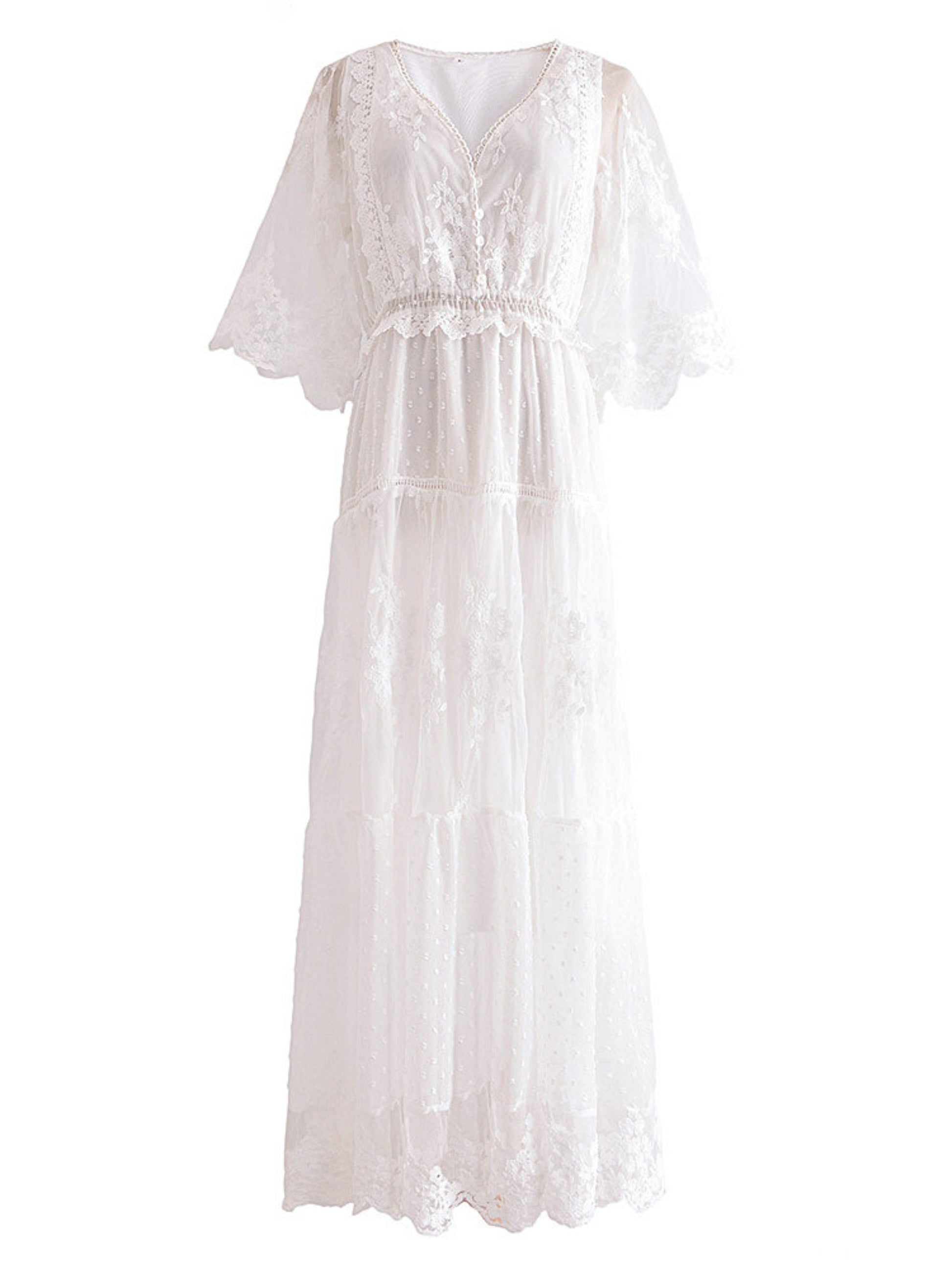 Step into your dream day draped in the romance and vintage-inspired elegance of our Women's Boho Wedding Maxi Dress. This stunning bridal maxi dress is the epitome of boho chic wedding apparel, offering a unique blend of classic style with a modern twist.