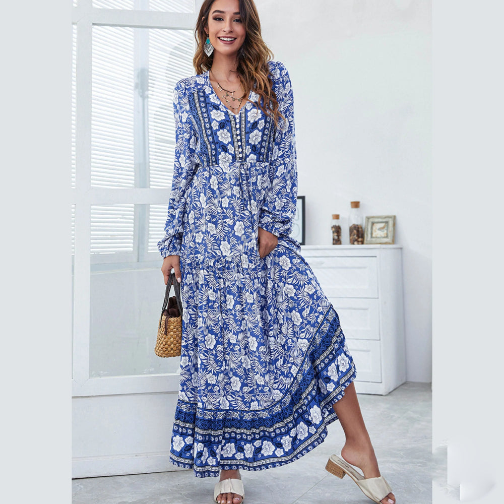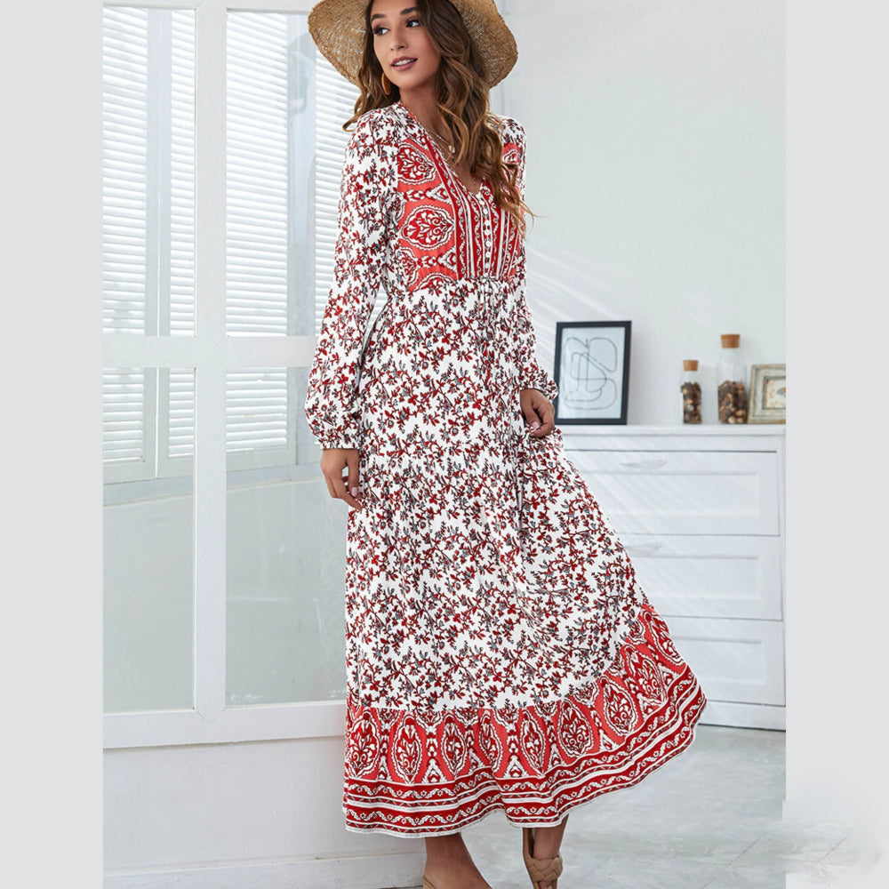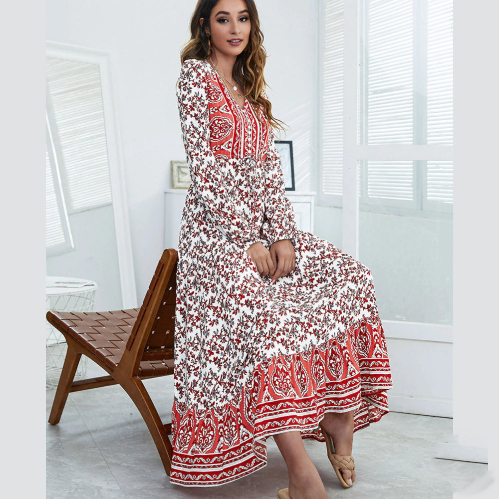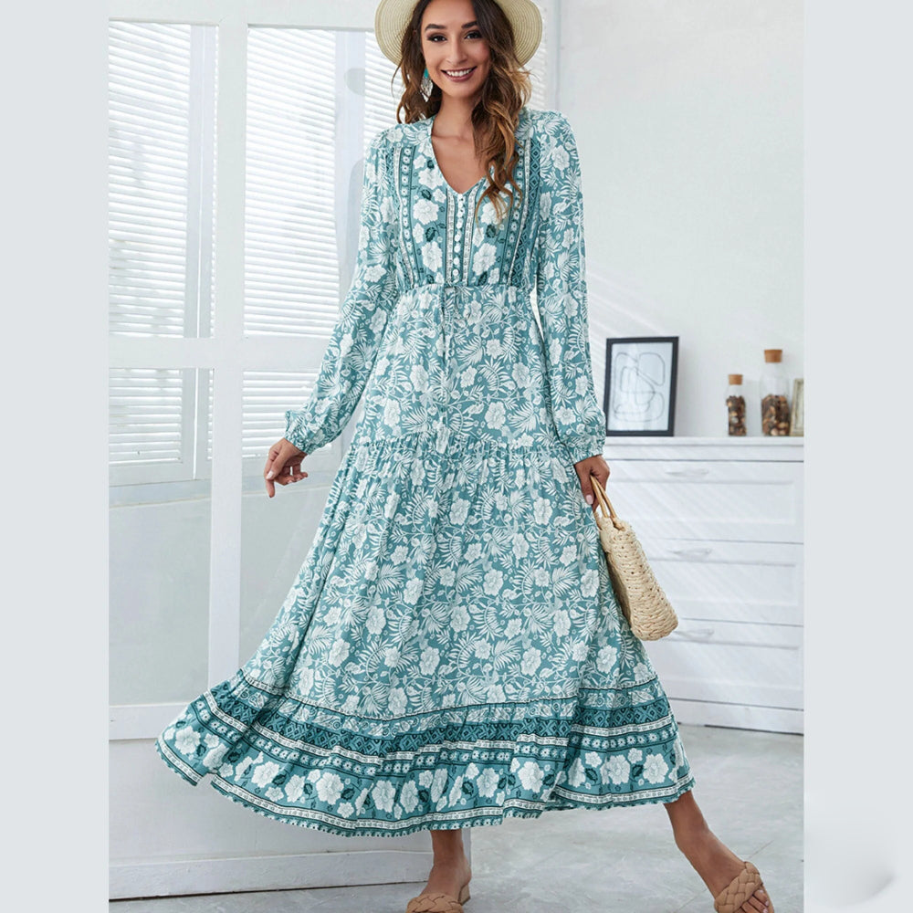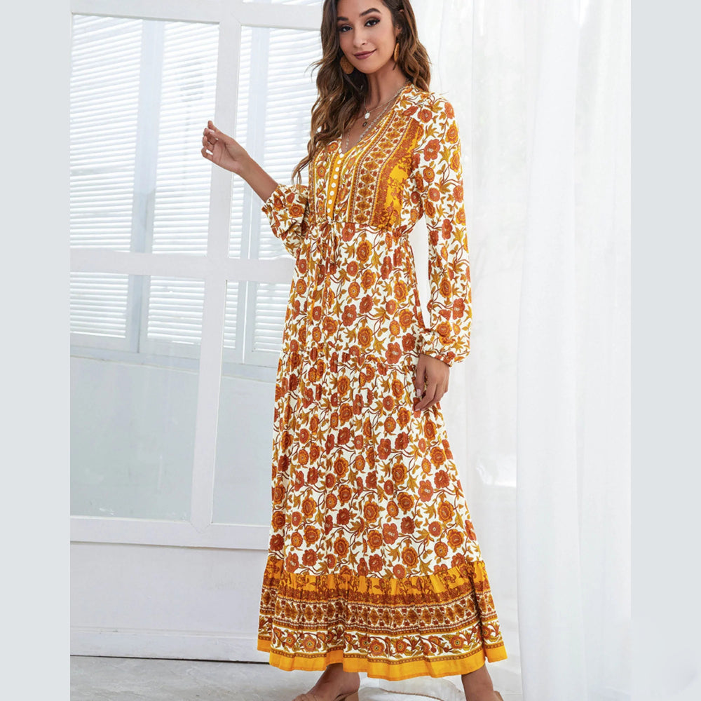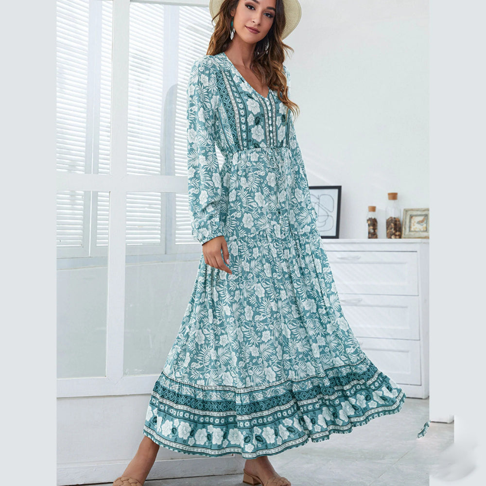 Embrace your Boho chic with our women's Boho summer dress. With a trendy floral print summer dress design, you're sure to be the best-dressed guest. This Bohemian style wedding guest dress is not only trendy but also extremely comfortable, making it perfect for any summer Boho wedding.