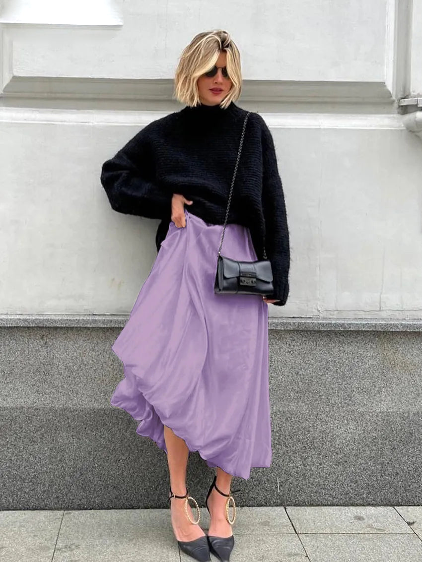 Elegant High Waist Women's Satin Skirt - The Perfect Mix of Comfort & Style