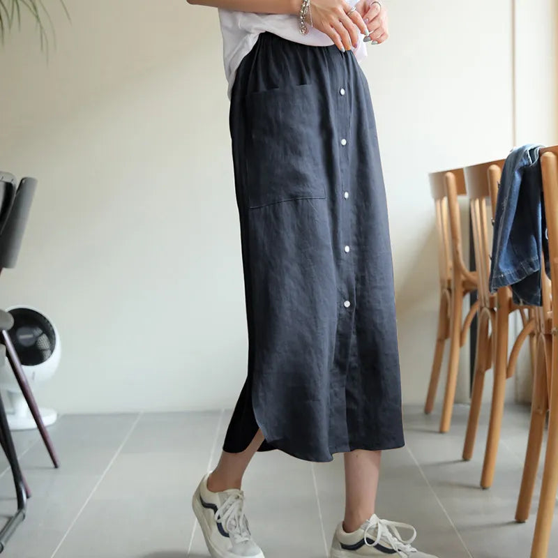 Elevate your style with our Elastic Waist Skirts for Women. The Button Down Skirt design adds a touch of elegance, while the high waist design flatters your figure. Made from eco-friendly cotton linen, this skirt is as good for the planet as it is for your fashion sense.