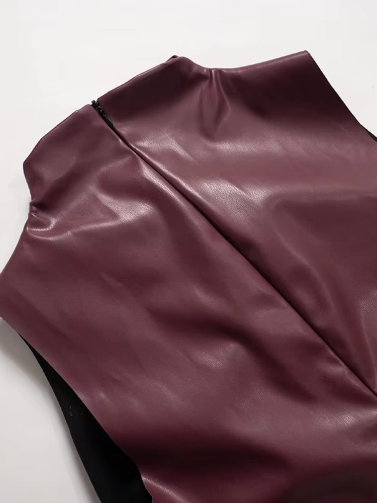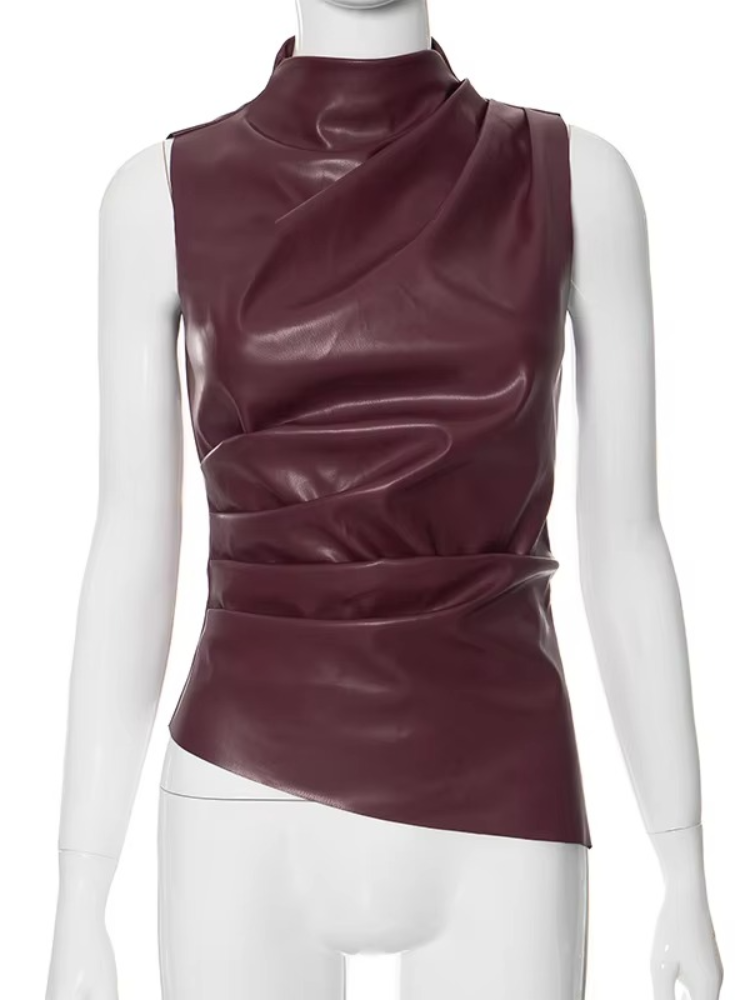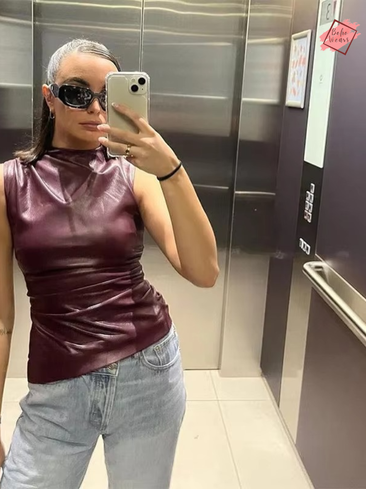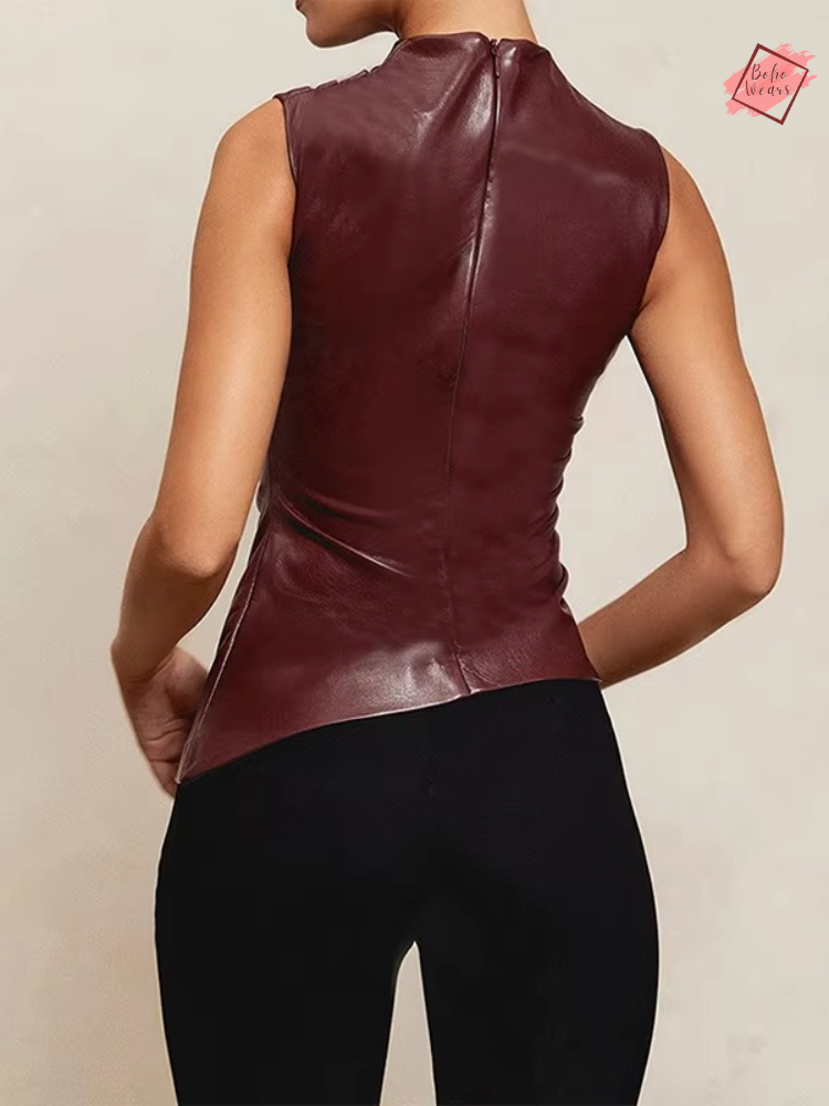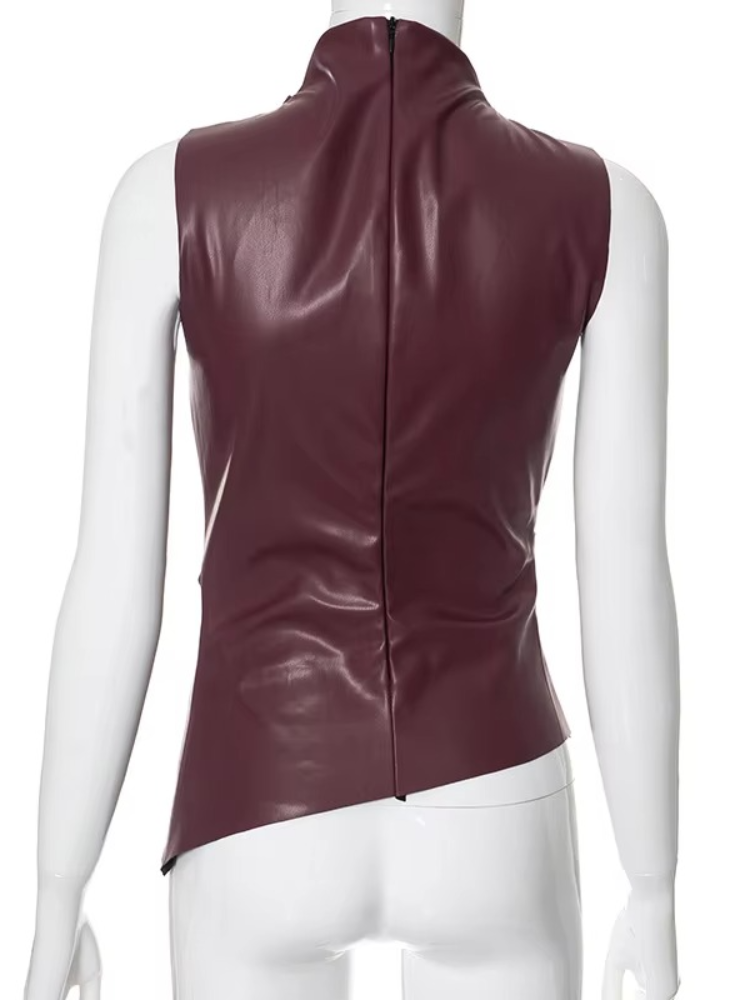 Women's Y2K Vintage PU Tank Top | High Waist Sleeveless Shirt